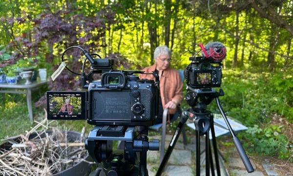 “Five cameras were strategically placed around my small studio for maximum effect. Hard drives piled high, cords carefully tucked away, and equipment occupied every square inch of space. The scene resembled a movie set. Here we were, set and ready to roll. The content I created for the course was unusual, and I had much to say and remember.”