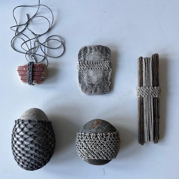 The course encouraged play without pressure. Liz described it as feeling like being back on the foundation. Making for the enjoyment of making and trusting that a body of work would gradually emerge. Over time, she noticed that her practice no longer felt fragmented. Jewellery, ceramics and mixed media began to sit together rather than in separate boxes.