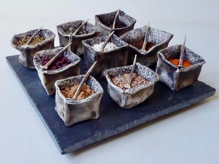 Later, seeing Lissa's own work with spoons opened up new layers of meaning. The spoon became a measure of care, of medicine, of how much is enough. Liz began creating small containers and porcelain forms filled with earth, salts and grit gathered from her garden. She started thinking about remedies, balms and tinctures, objects that hold, protect and heal.